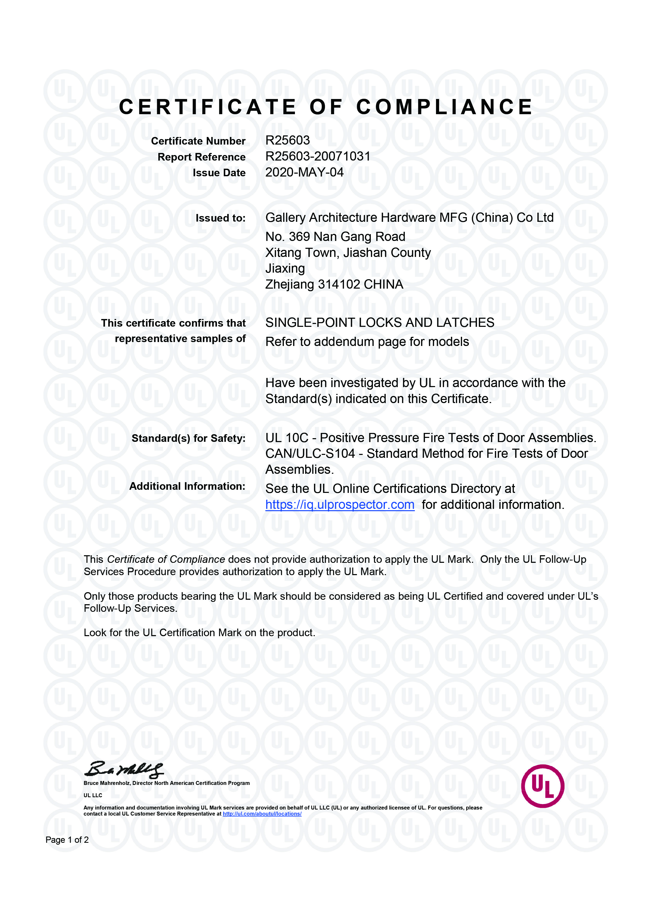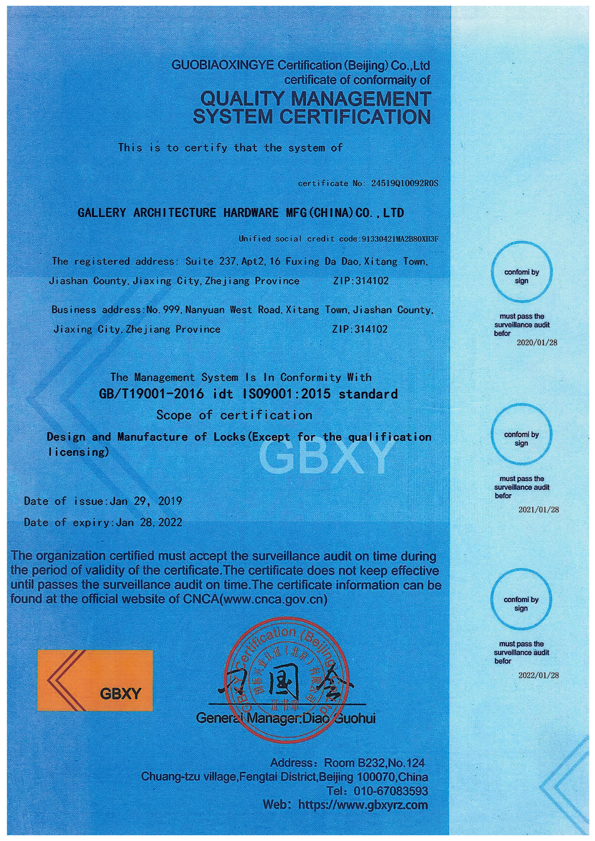 浙江堅迪五金制造有限公司始建于 1995 年。自 2003 開始,公司致力于高標準商業鎖的研發工作,并于 2006 及 2007 年,8700 插芯鎖系列獲得美國國家標準 ANSI A 156.13-2005 一級、ANSI A 156.2-2003 二級和美國 UL 10C3 小時防火測試認證。自 1998 年以來,公司不斷提升產品和客戶服務品質,并獲得了 ISO 9001 的認證。